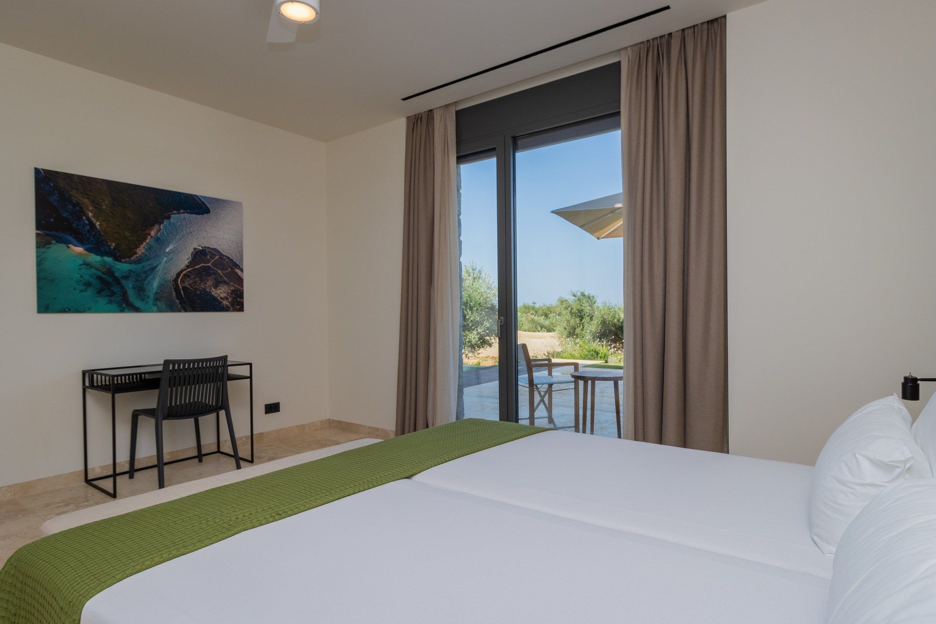 1 bedroom with double bed (can be converted into twin beds), A/C, ensuite bathroom with shower, closet, access to the pool terrace, garden view