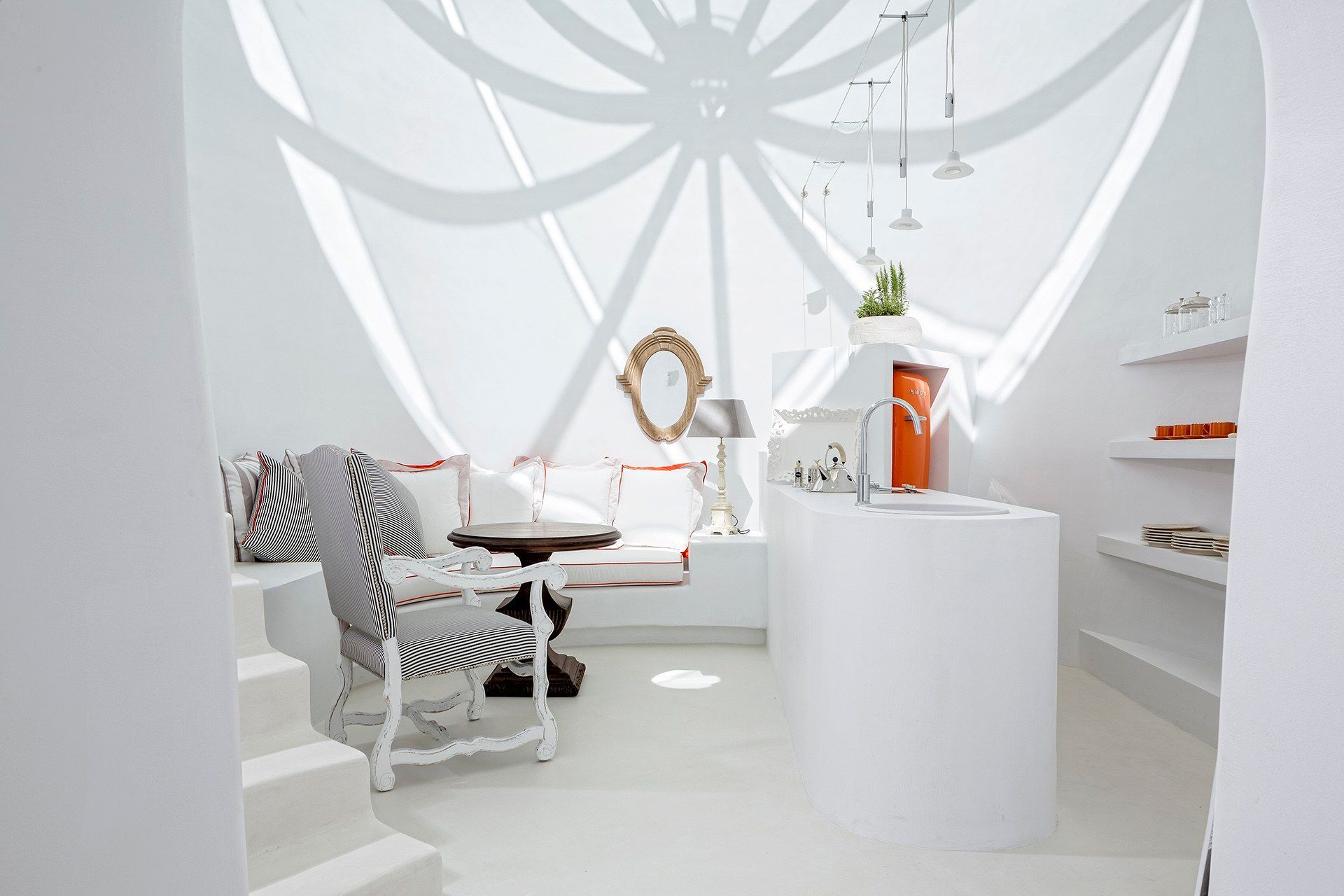 Located in Pyrgos Kallistis, in the middle of the island, this luxury Santorini villa welcomes up to 10 guests across 5 bedrooms. A renovated heritage property of ingenious design, Celadon was originally a lime kiln that has been carefully restored and integrated into this unique architecture—balancing clean-lined living with a strong sense of place. Set inland for privacy yet within easy reach of Santorini’s highlights, it is the perfect option for a relaxing and luxurious vacation.