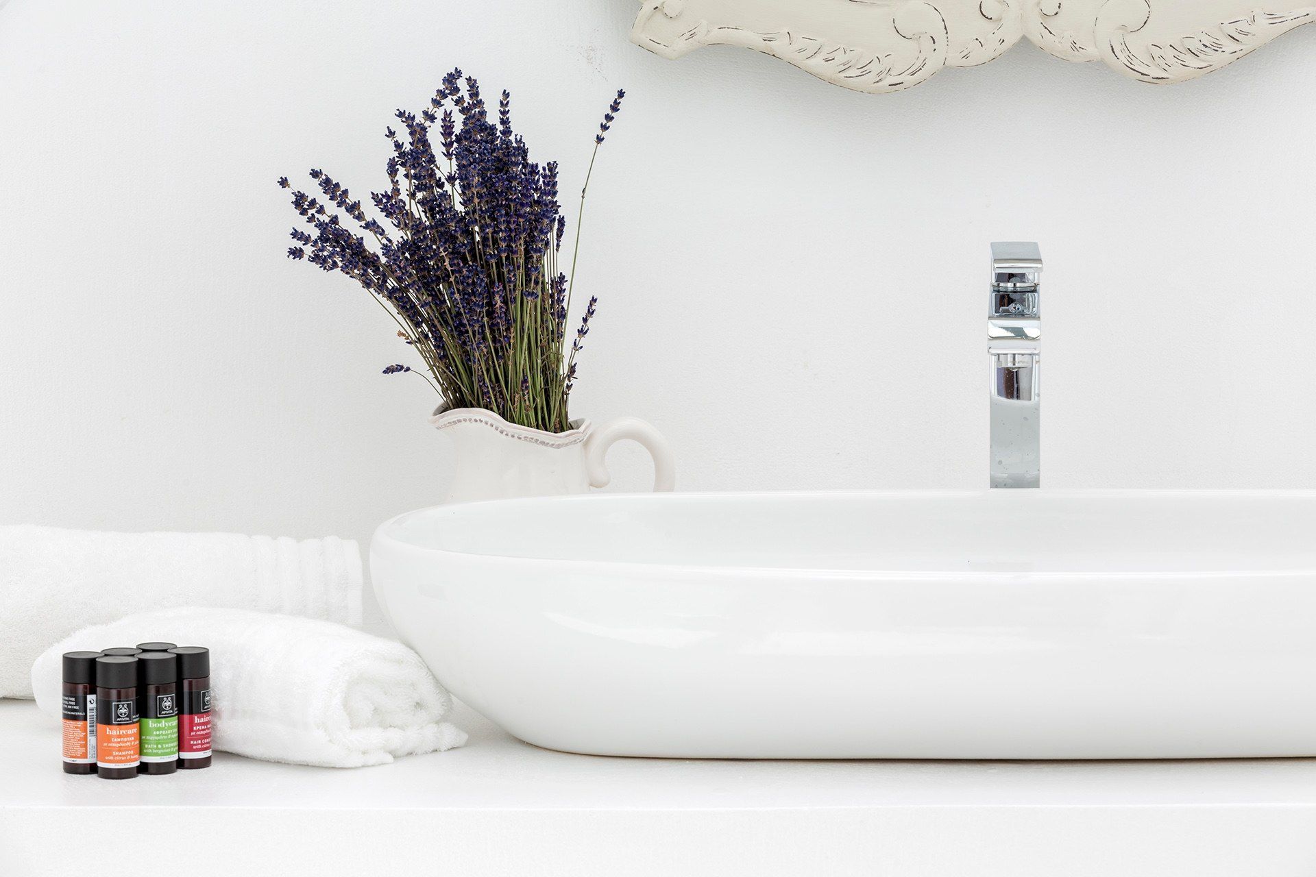 Wide, sun-washed outdoor areas feature a private infinity pool, unobstructed sea views, a separate stone-built outdoor jacuzzi on a raised platform, a shaded lounge area under a pergola, and luxurious sun beds. From the moment you step onto the terrace, the landscape takes over. You will find plenty of cozy spots to hang out, grab a snack, or just enjoy the starry night. Surrounded by native greenery and herb bushes, Celadon also offers a petite roof terrace made for sunrise yoga.