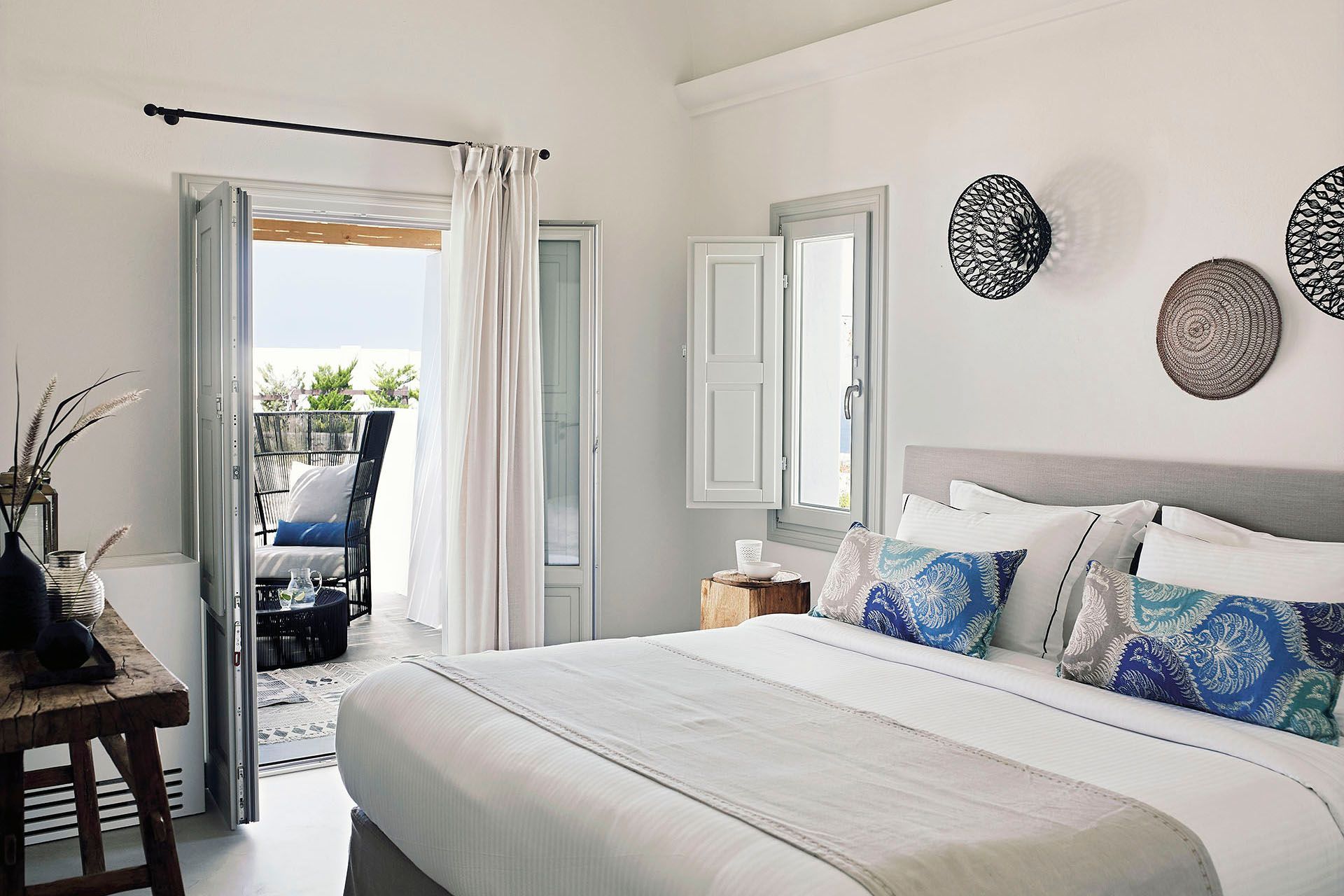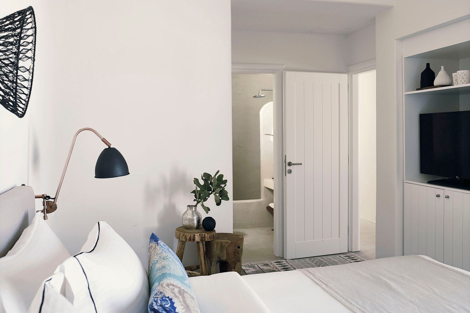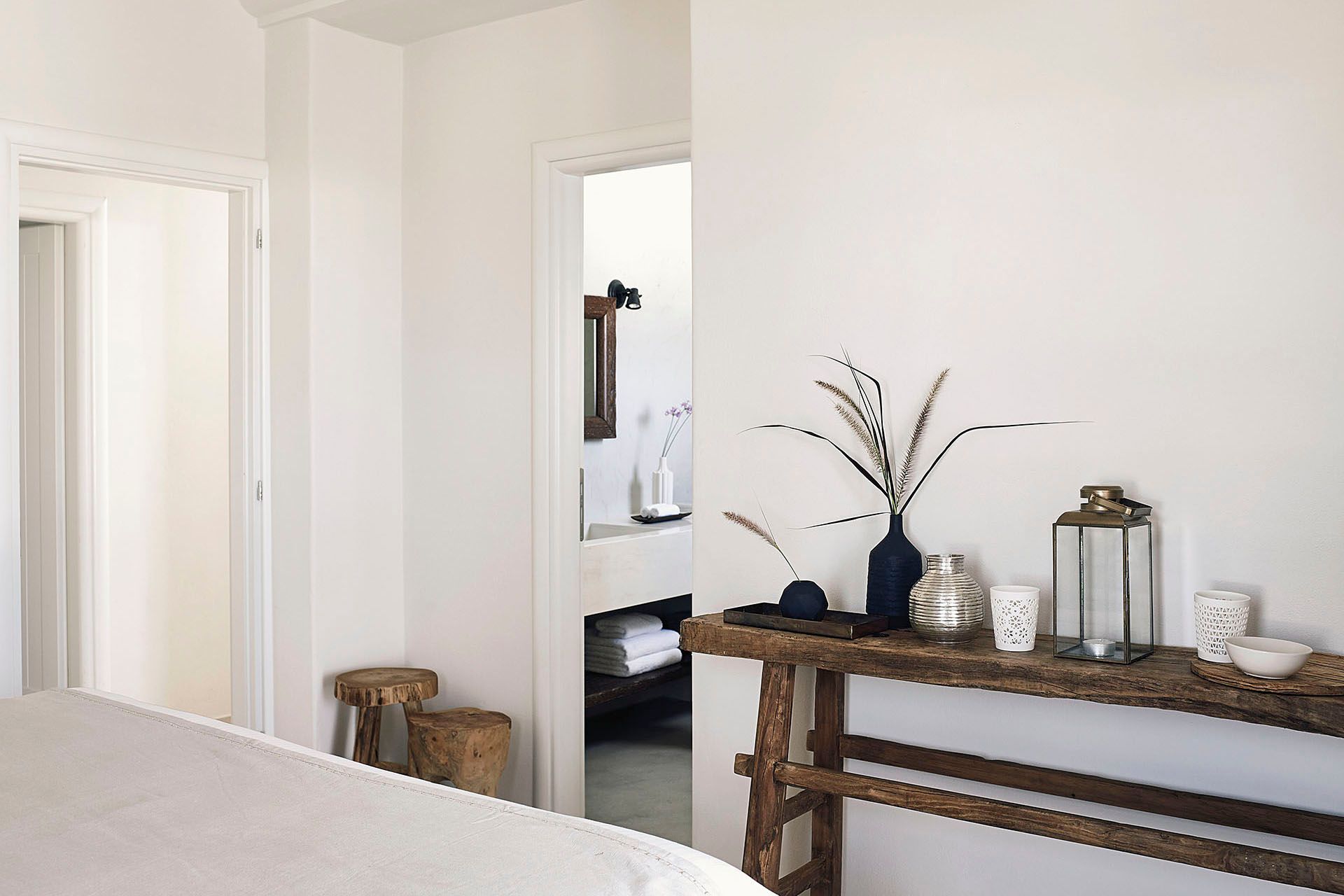 Staying at Ilios also means access to hotel-style services, including a daily breakfast buffet, housekeeping, turndown service, a pillow menu, and room service. There is also an office corner for guests who need to catch up on work during their stay. Beyond the villa, Ammoudi Bay is a short distance away—ideal for waterside taverns or a private catamaran cruise around the volcano.
