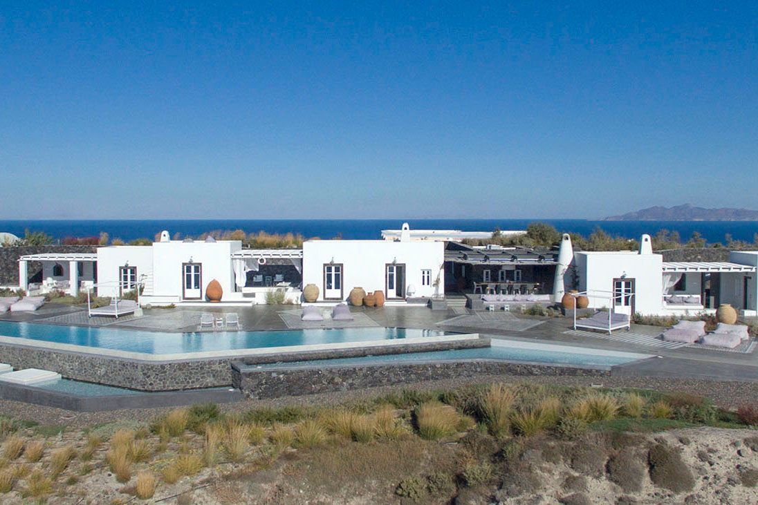 The White Cliff Estate sets a calm, private tone from the start—a gated caldera-edge estate best described as the villa that features one of Santorini’s largest private infinity pools, with direct volcano views from the terrace. Although you’re within a short drive of Fira, the property feels quietly removed from the crowds, with the layout designed to prioritise privacy and open scenery. Sitting on the caldera cliffside around 300 metres above the volcanic lagoon, this is an exclusive-use resort-style villa for up to 10 guests—ideal for groups who want space, service, and a strong sense of place.