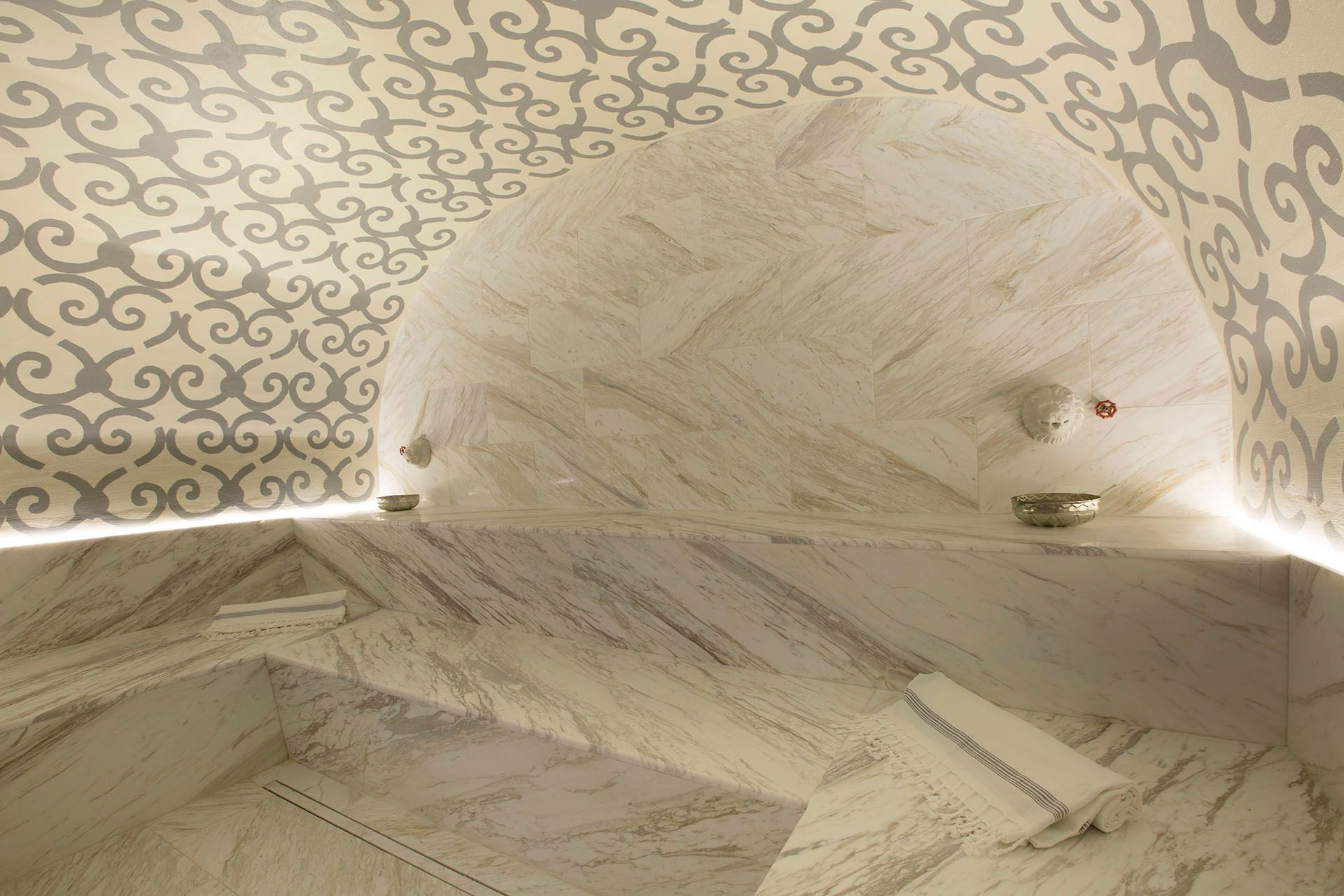 Relaxation and wellness area with marble spa, heated floors and spa designated room