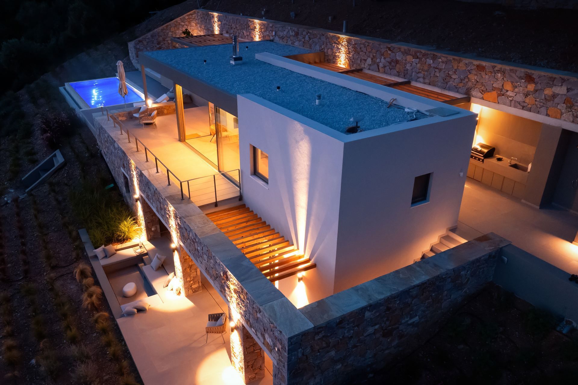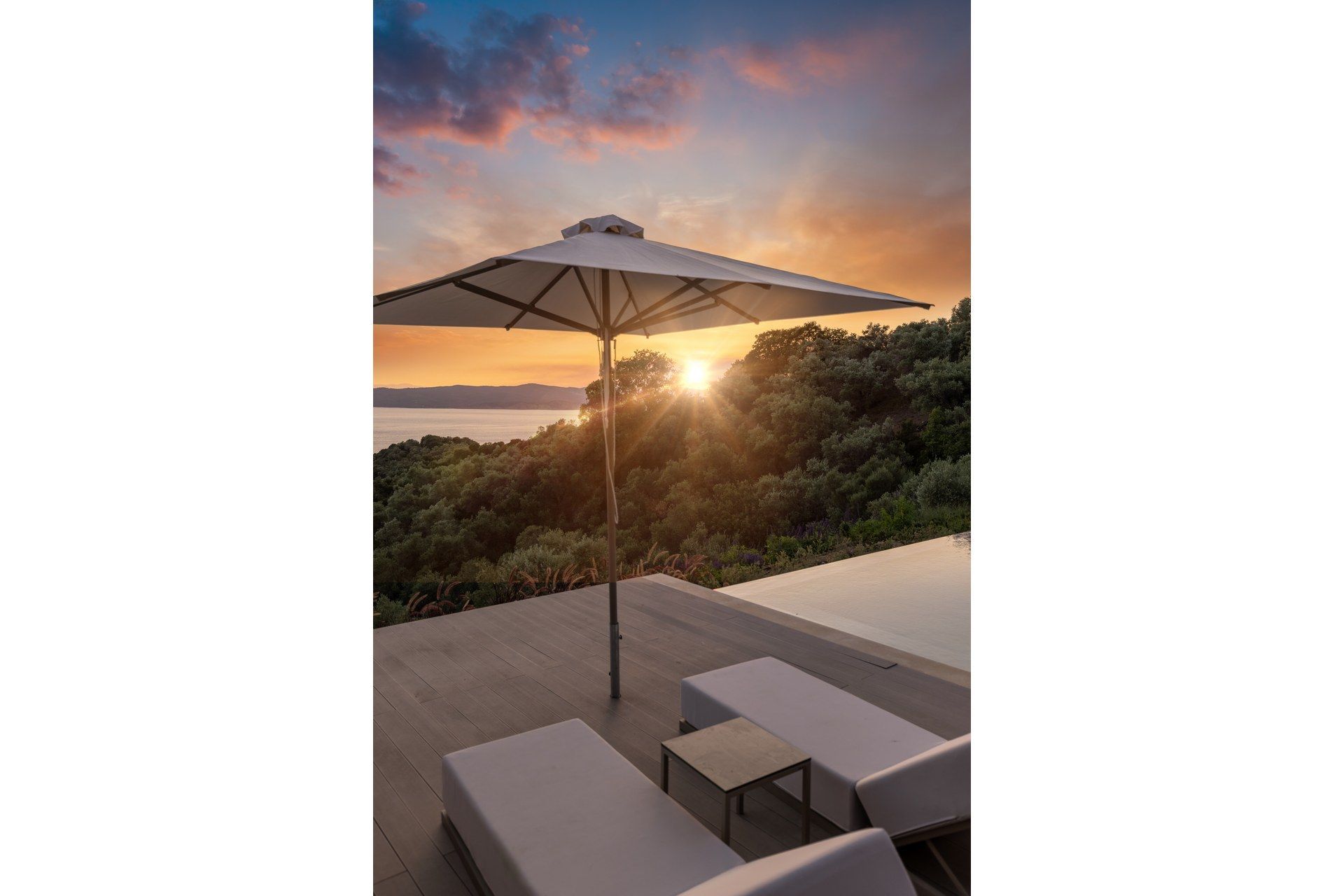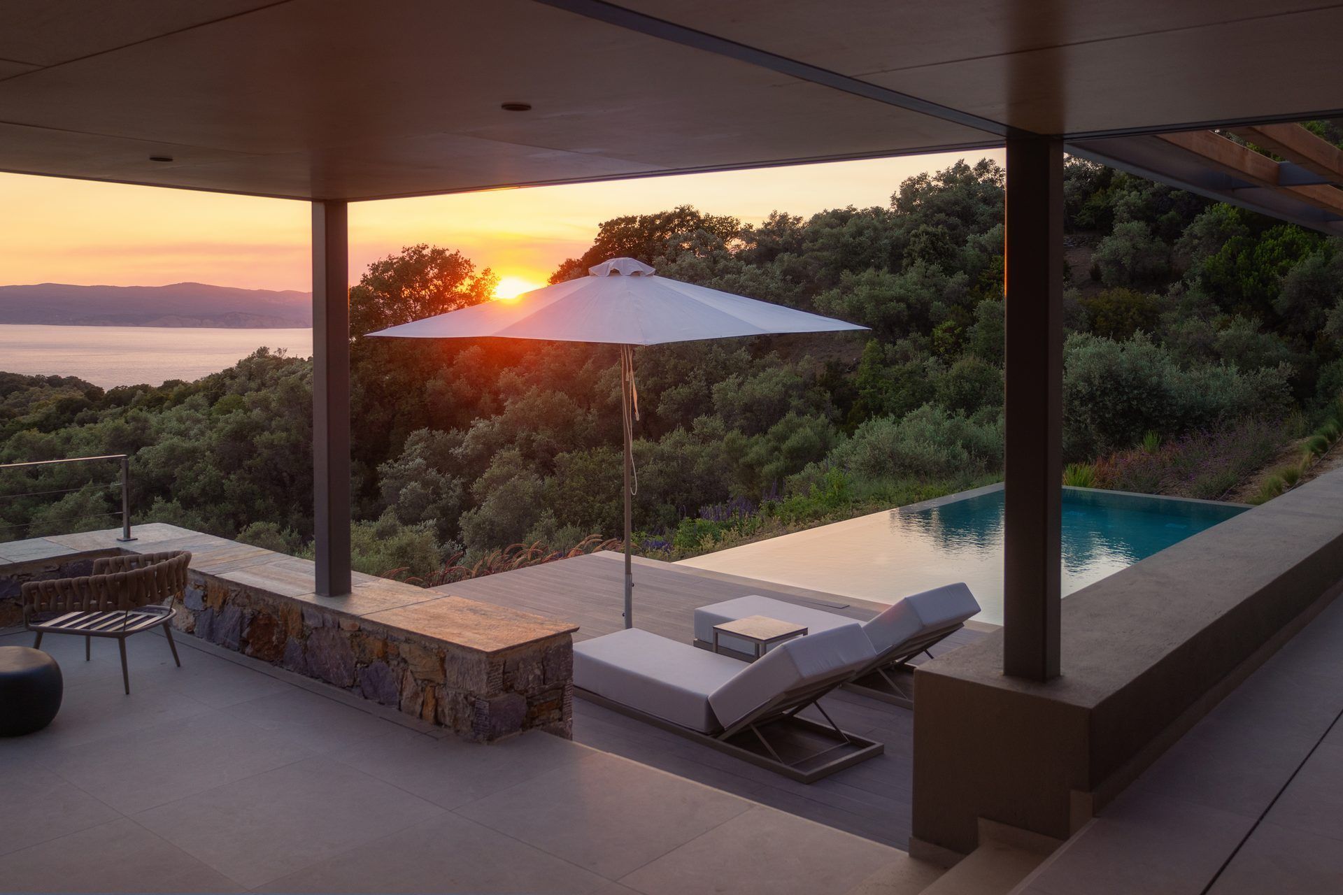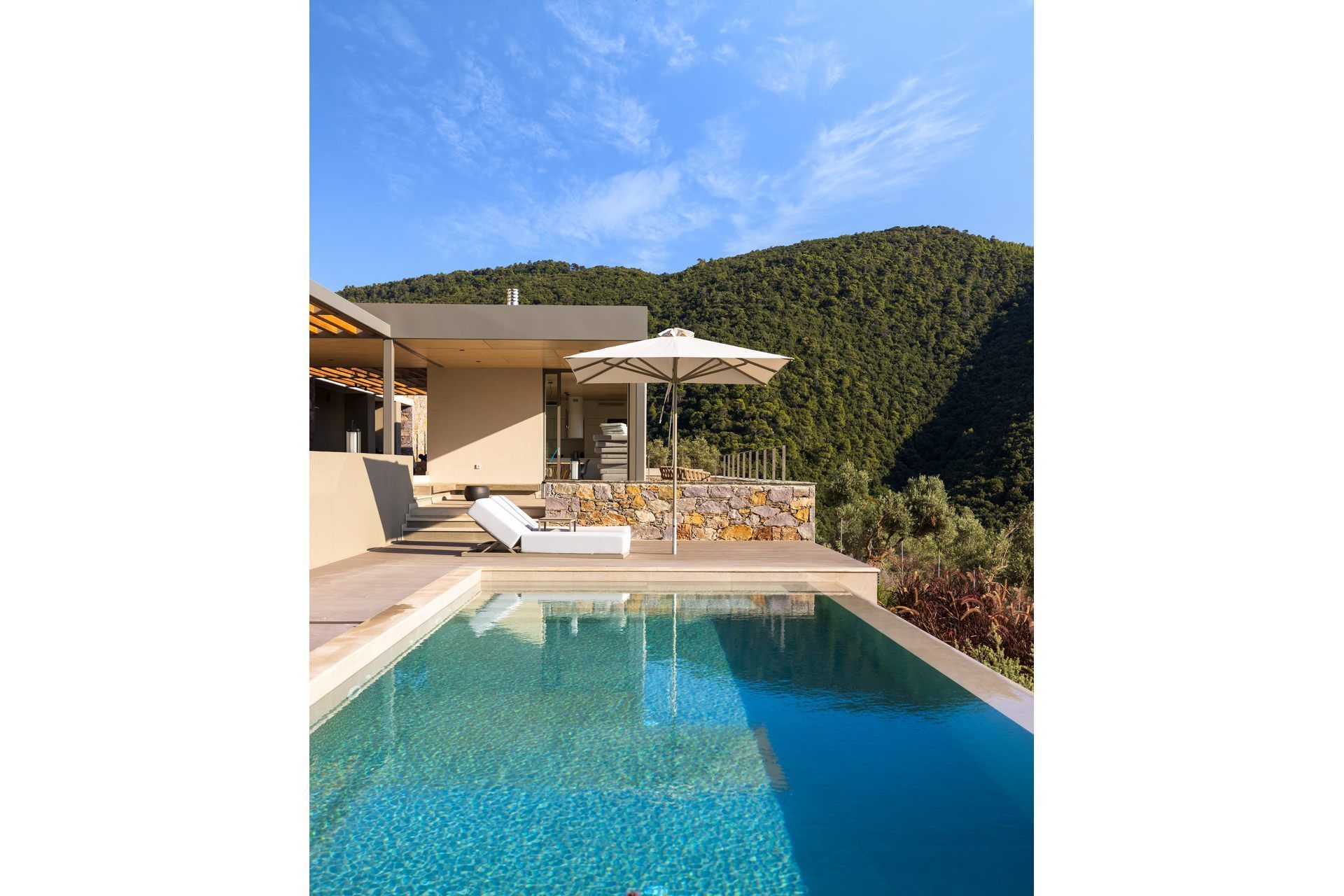 This luxury villa in Skiathos has a quieter, greener feel, with pine and olive trees all around and the sea stretching out ahead. Kechria and Ligaries beaches are a short drive away, and when you want a livelier scene, Skiathos Town is close enough for restaurants, bars, and a little nightlife. Options here are endless, but you’ll find that most evenings tend to end on the terrace, watching the sunset settle over the water.