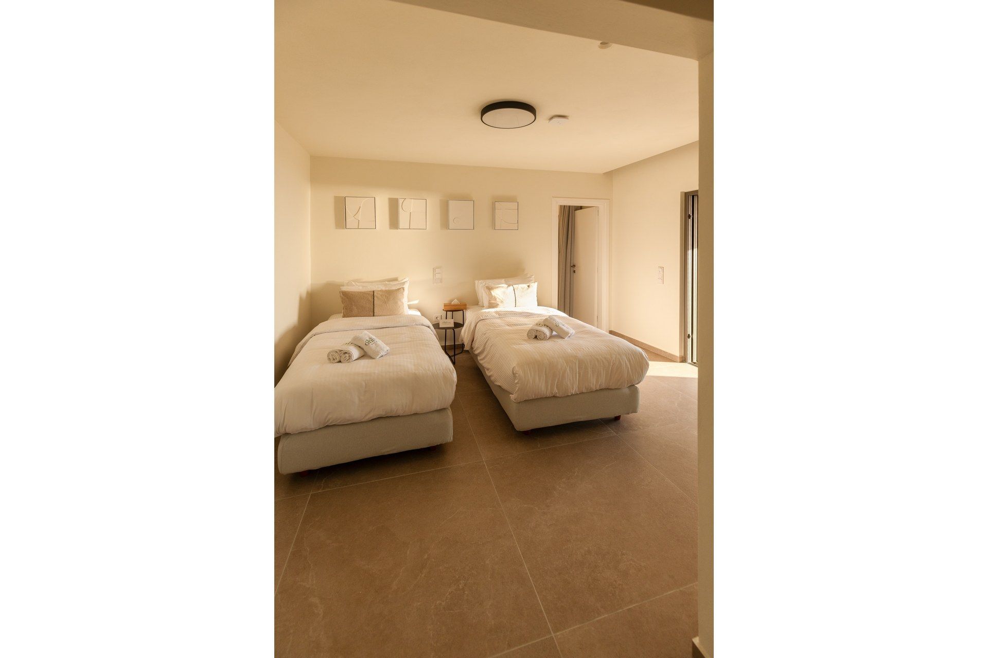 1 junior bedroom with twin beds, ensuite bathroom, A/C, internal connecting door to the master bedroom, access to pool terrace, sea view