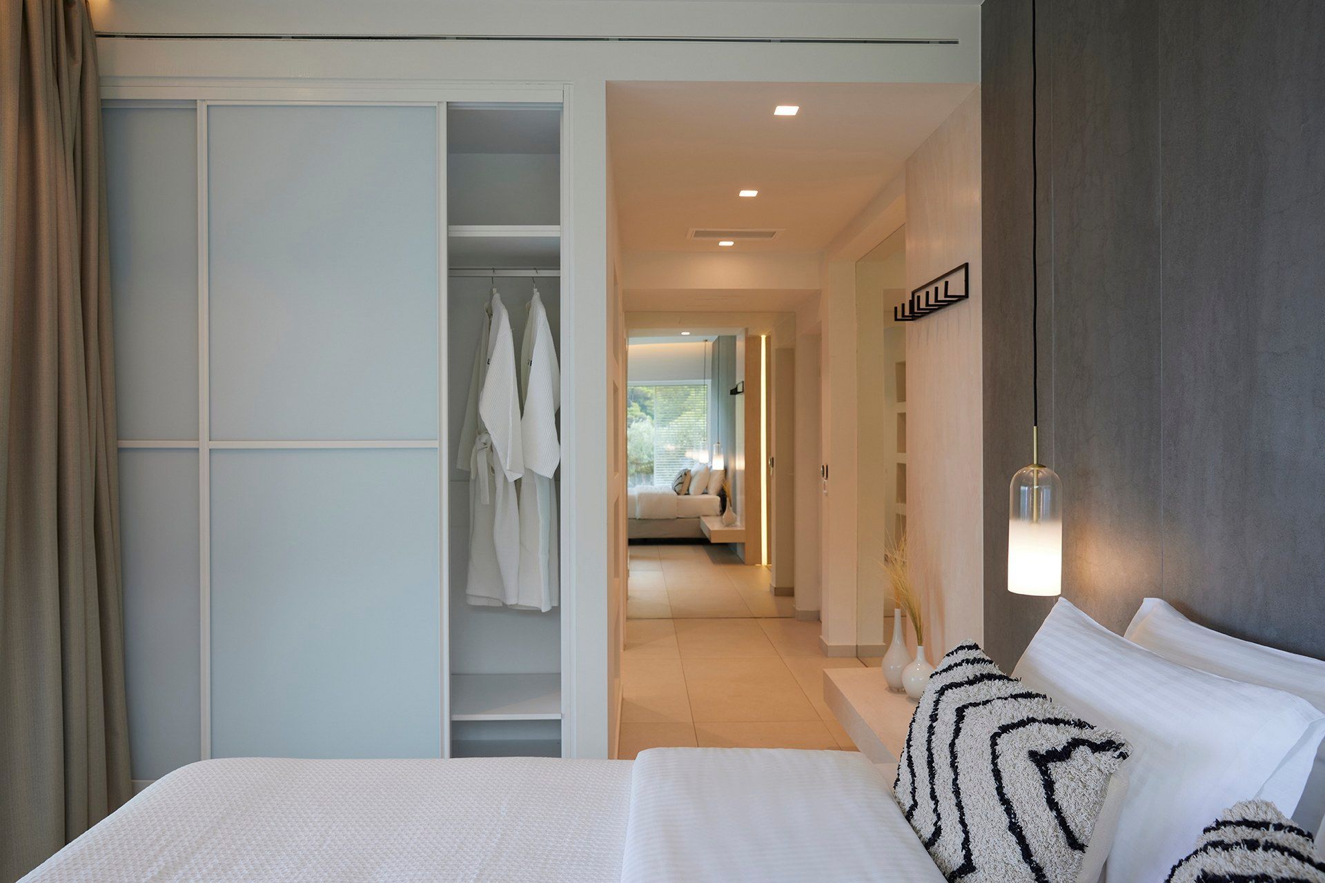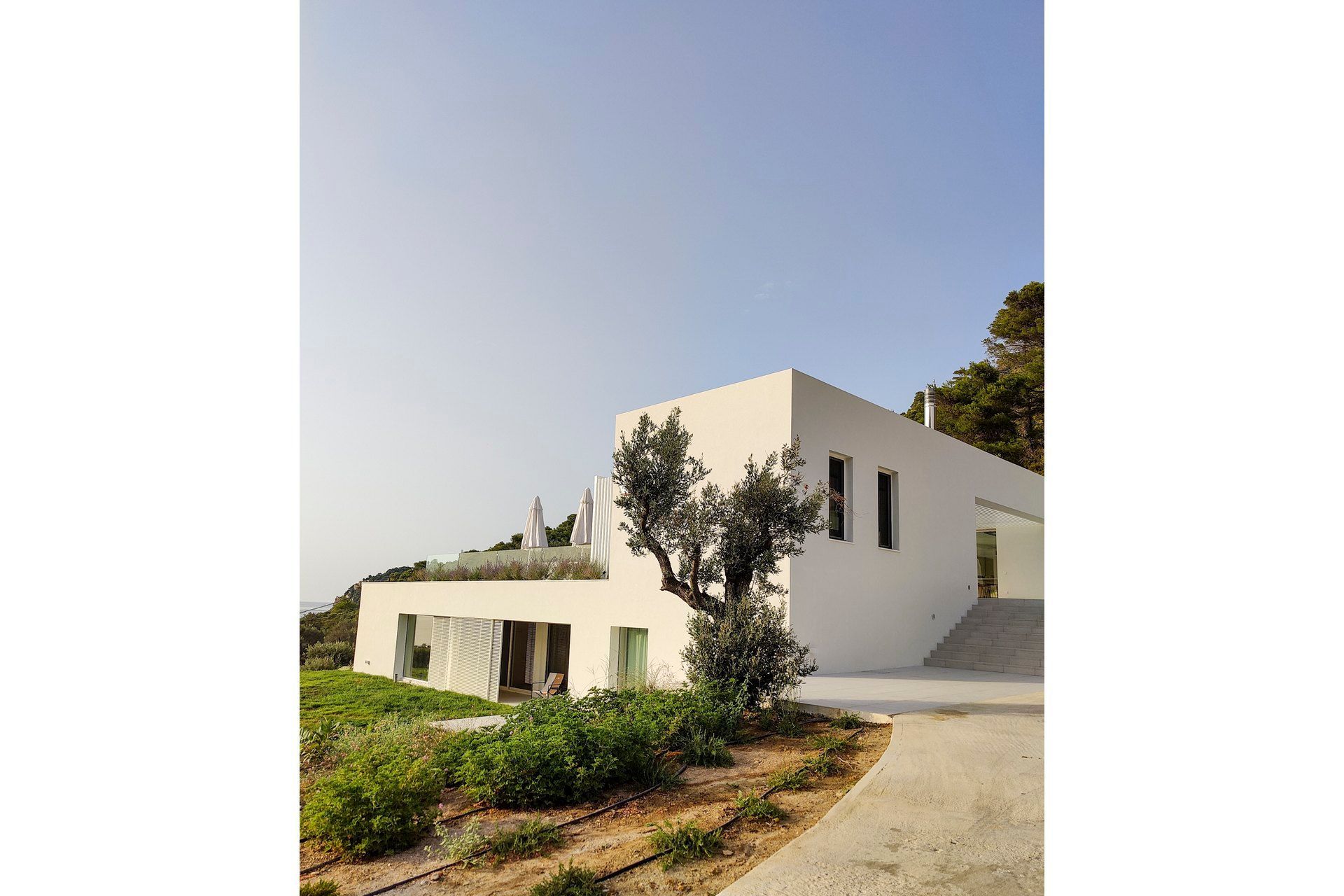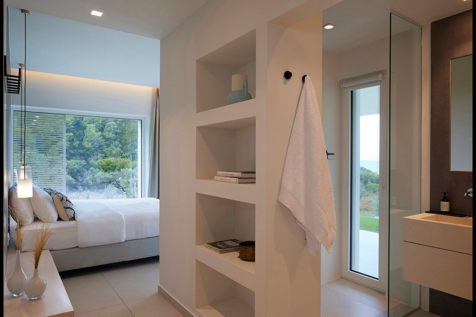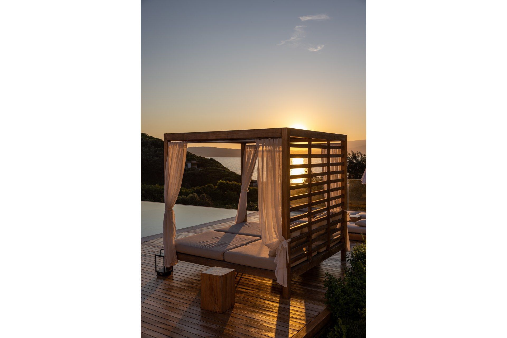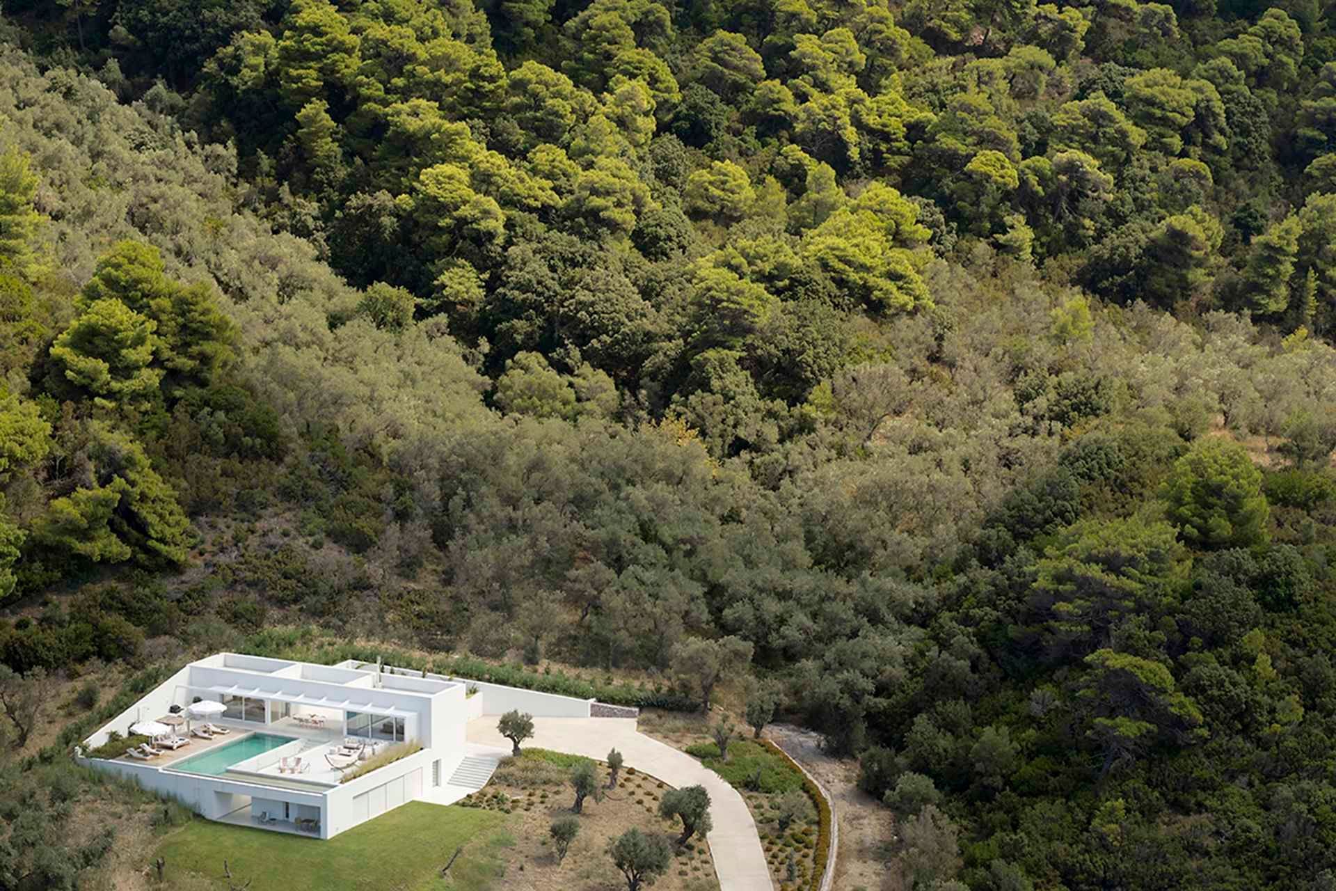 Azurine sits near sandy Ligaries Beach in Skiathos, in a setting that feels green and protected yet wonderfully open to the sea. This luxury villa accommodates up to eight guests in four bedrooms and four bathrooms, with the shared living spaces on the pool level and the bedrooms positioned below for privacy and quieter mornings. The design is modern and understated, made for guests who want beach days on foot, a serious pool at home, and a calm base that still feels special.