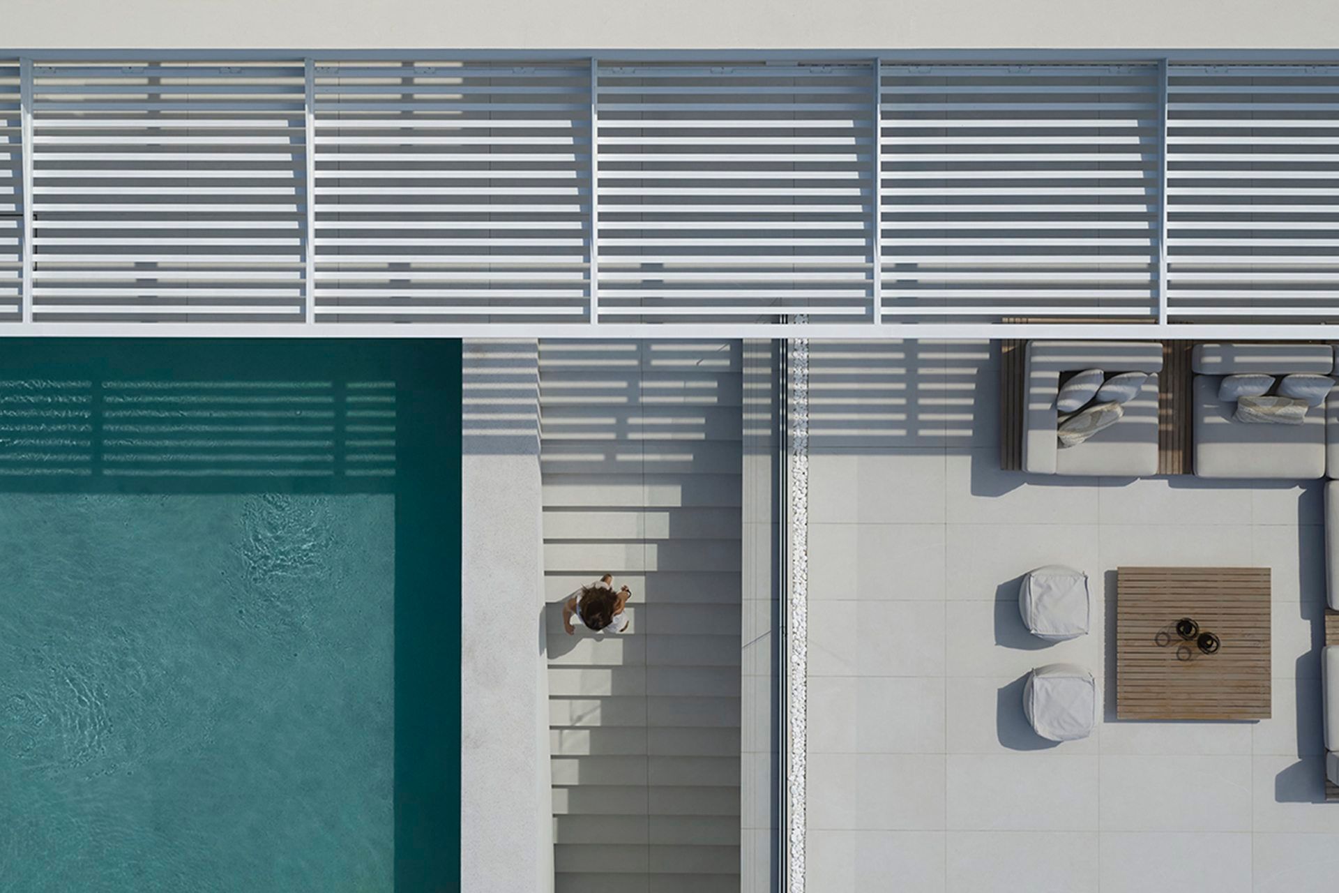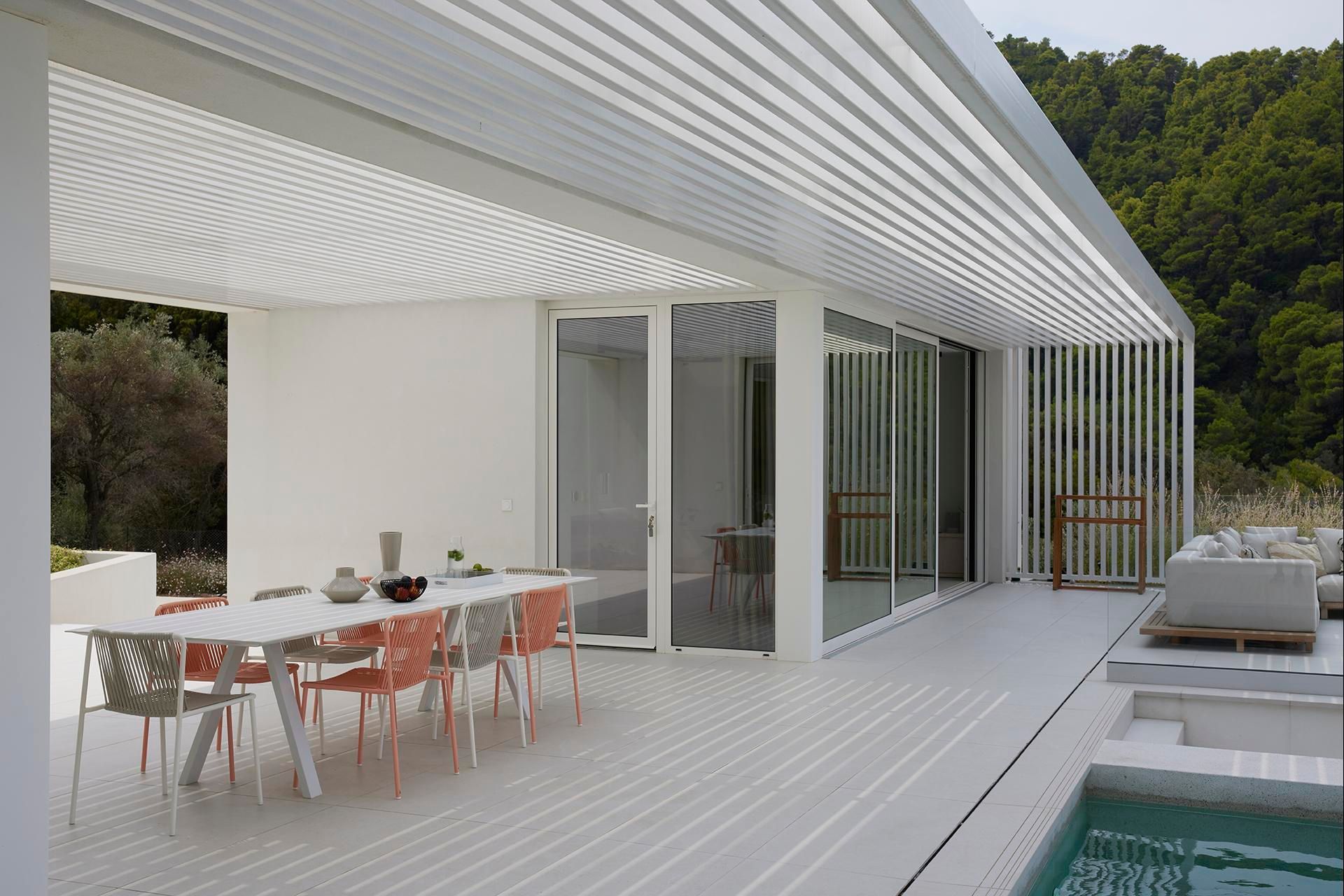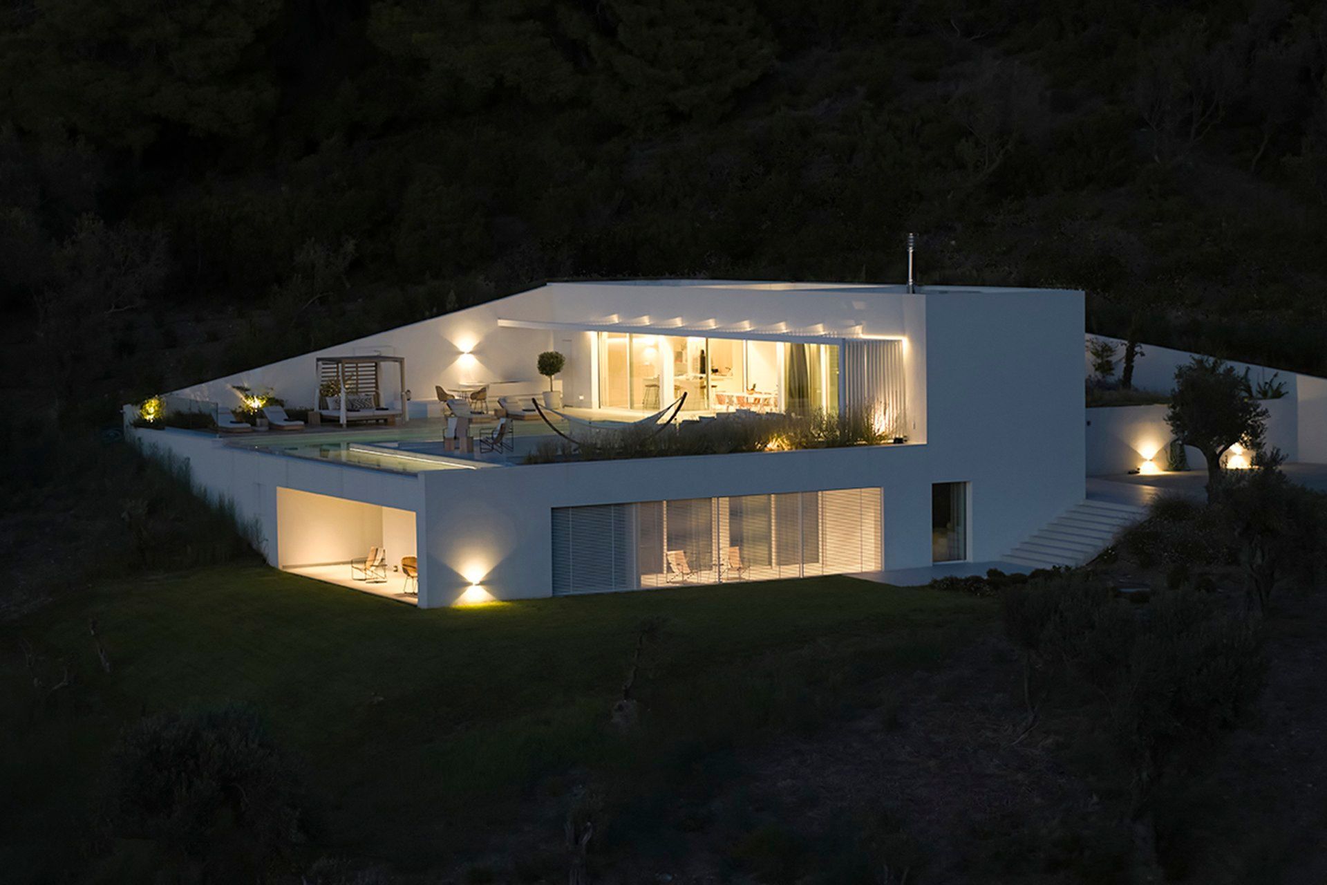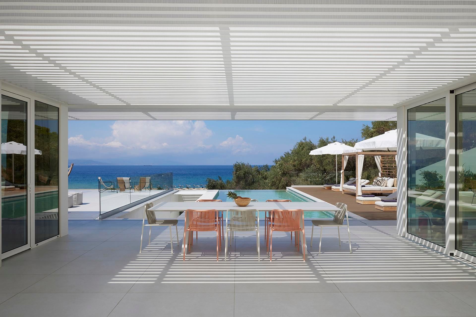 Azurine sits near sandy Ligaries Beach in Skiathos, in a setting that feels green and protected yet wonderfully open to the sea. This luxury villa accommodates up to eight guests in four bedrooms and four bathrooms, with the shared living spaces on the pool level and the bedrooms positioned below for privacy and quieter mornings. The design is modern and understated, made for guests who want beach days on foot, a serious pool at home, and a calm base that still feels special.