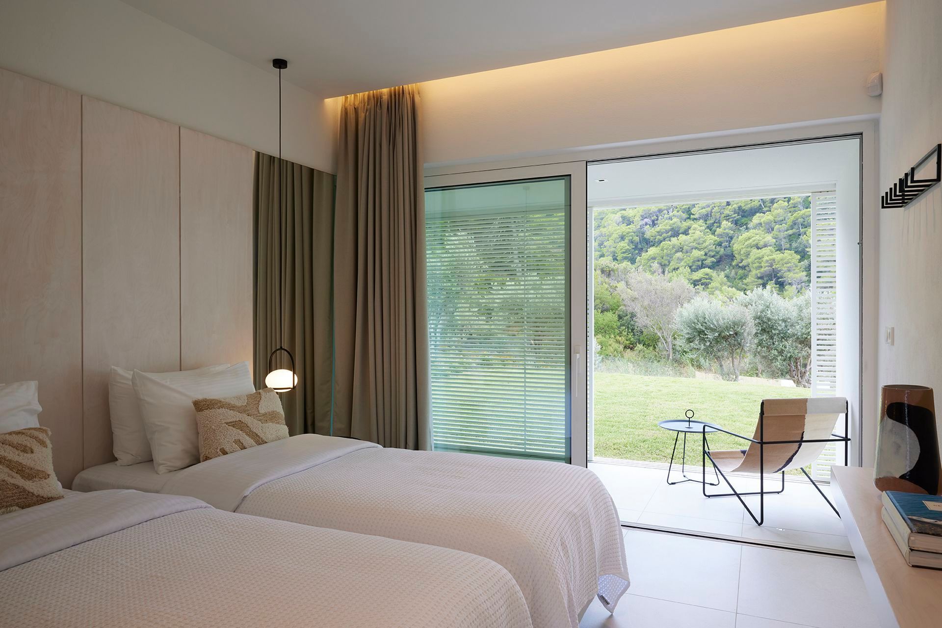 1 bedroom with twin beds, A/C, access to terrace, garden view
