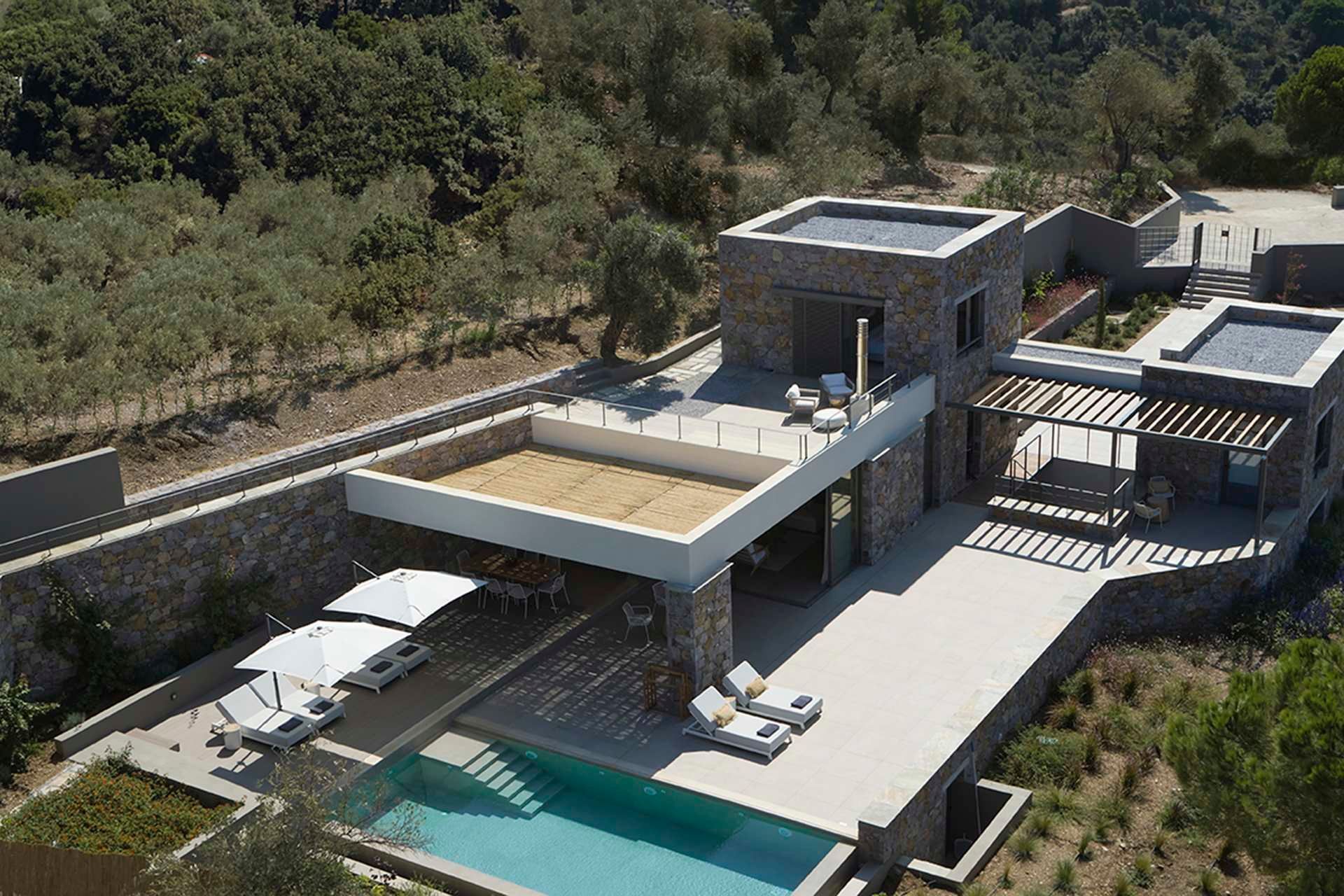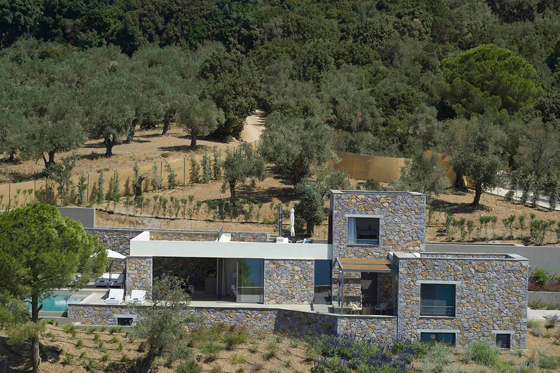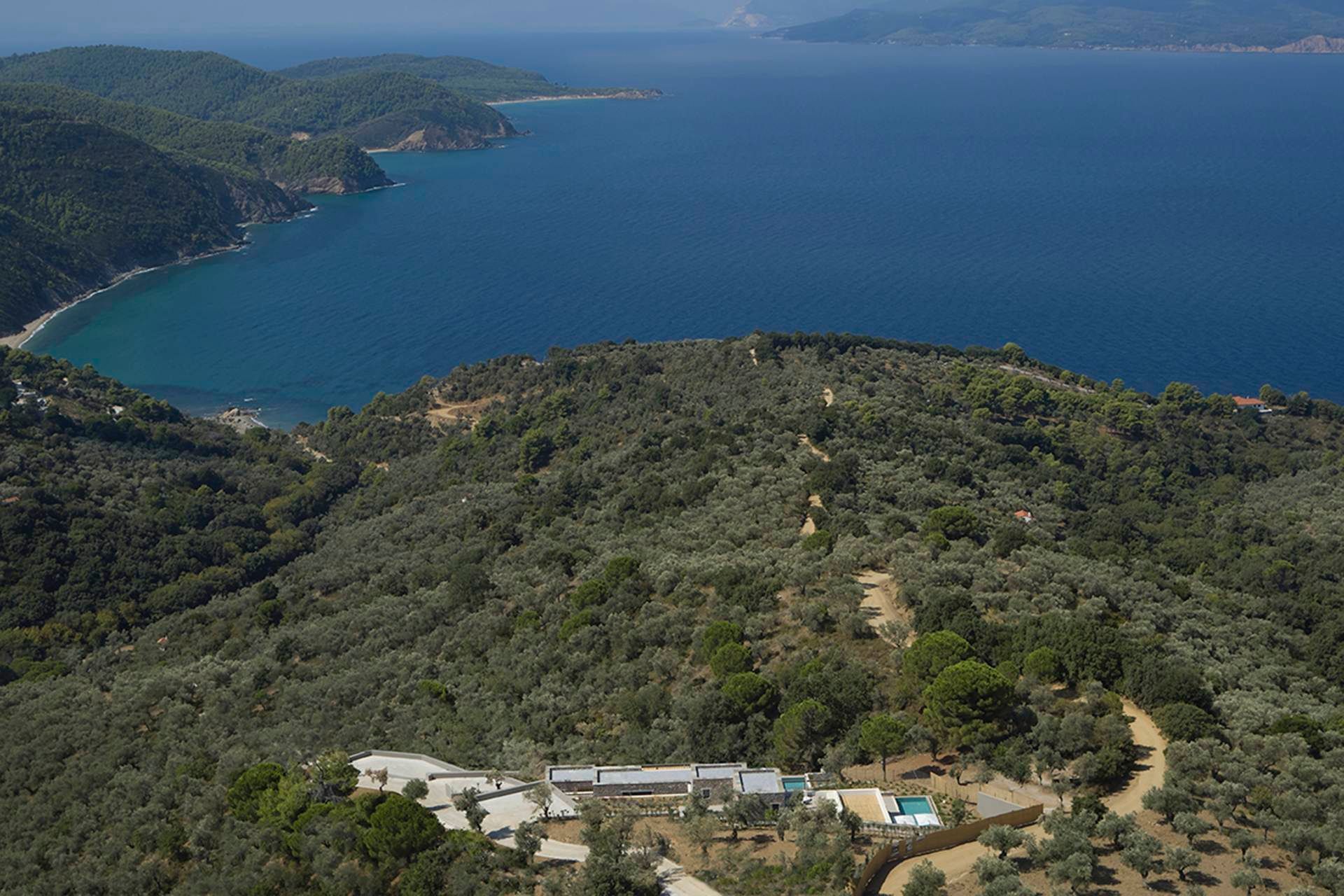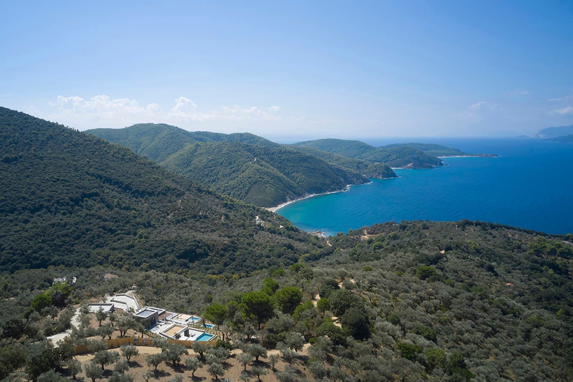 Leafbird invites you to slow down almost immediately, not through grand gestures but through the way it holds its setting. In Kechria, on Skiathos’ quieter side, this luxury villa sits among olives with the Aegean ahead, offering that rare feeling of being away without being cut off. It accommodates up to eight guests in four bedrooms, all ensuite, and the layout across three levels creates a sense of privacy that suits close friends, couples travelling together, or families who like space as much as comfort.