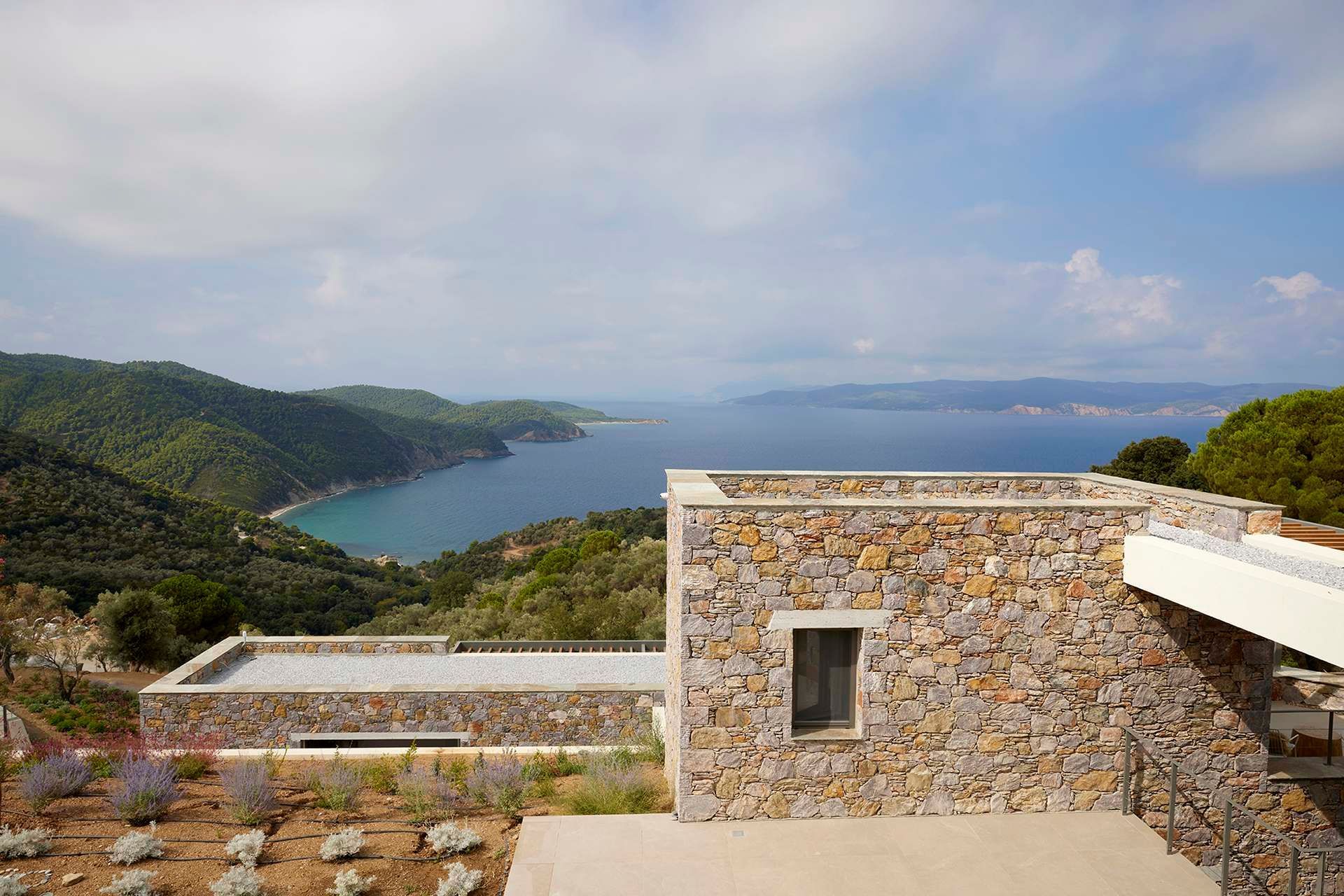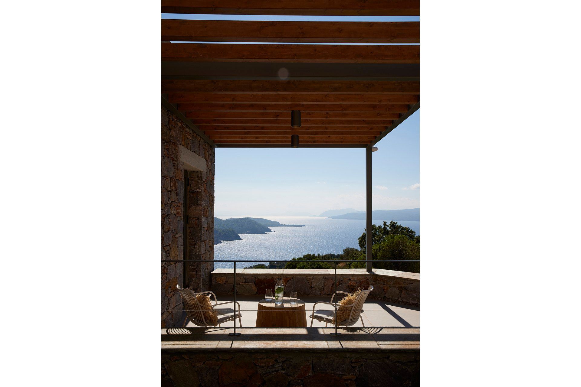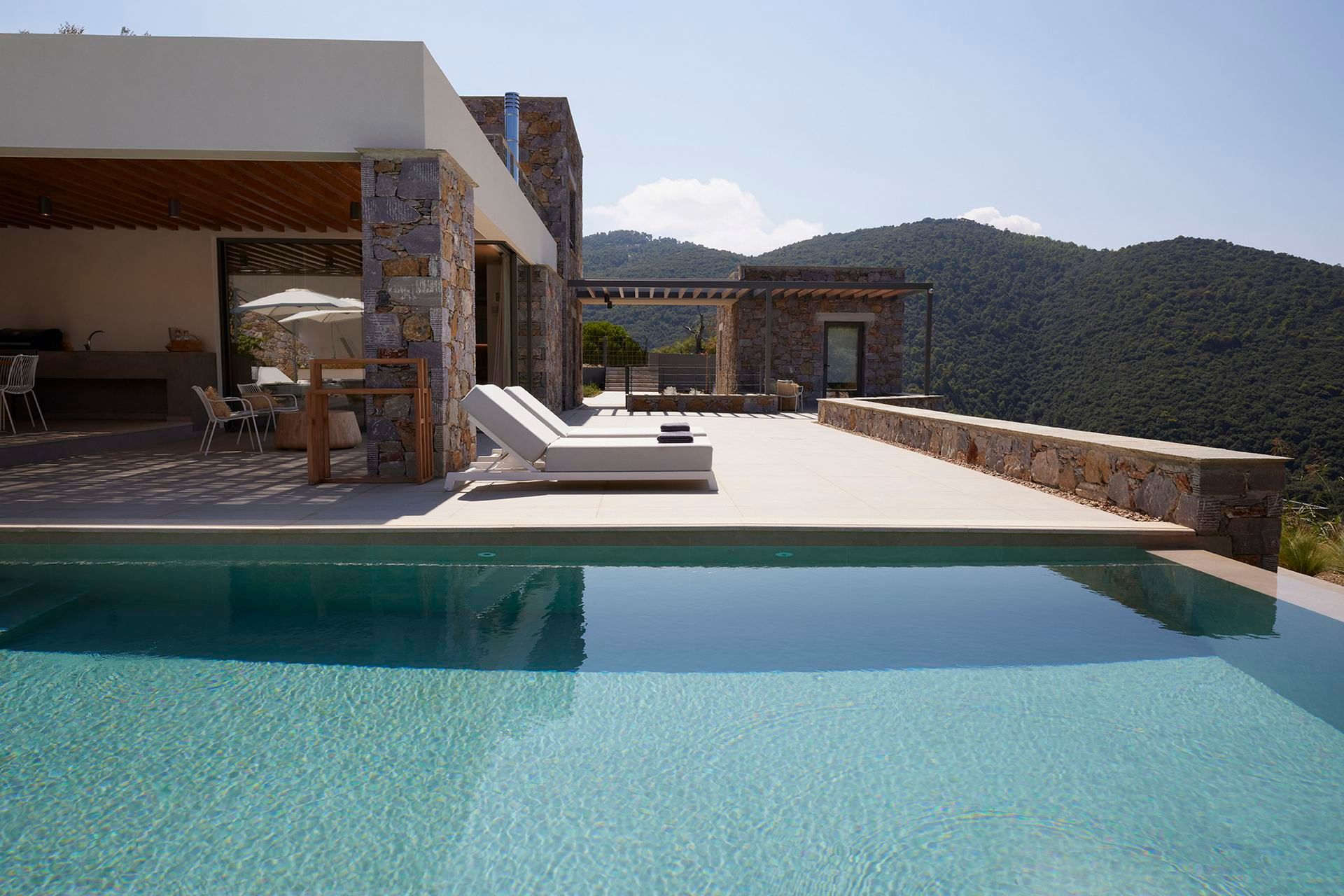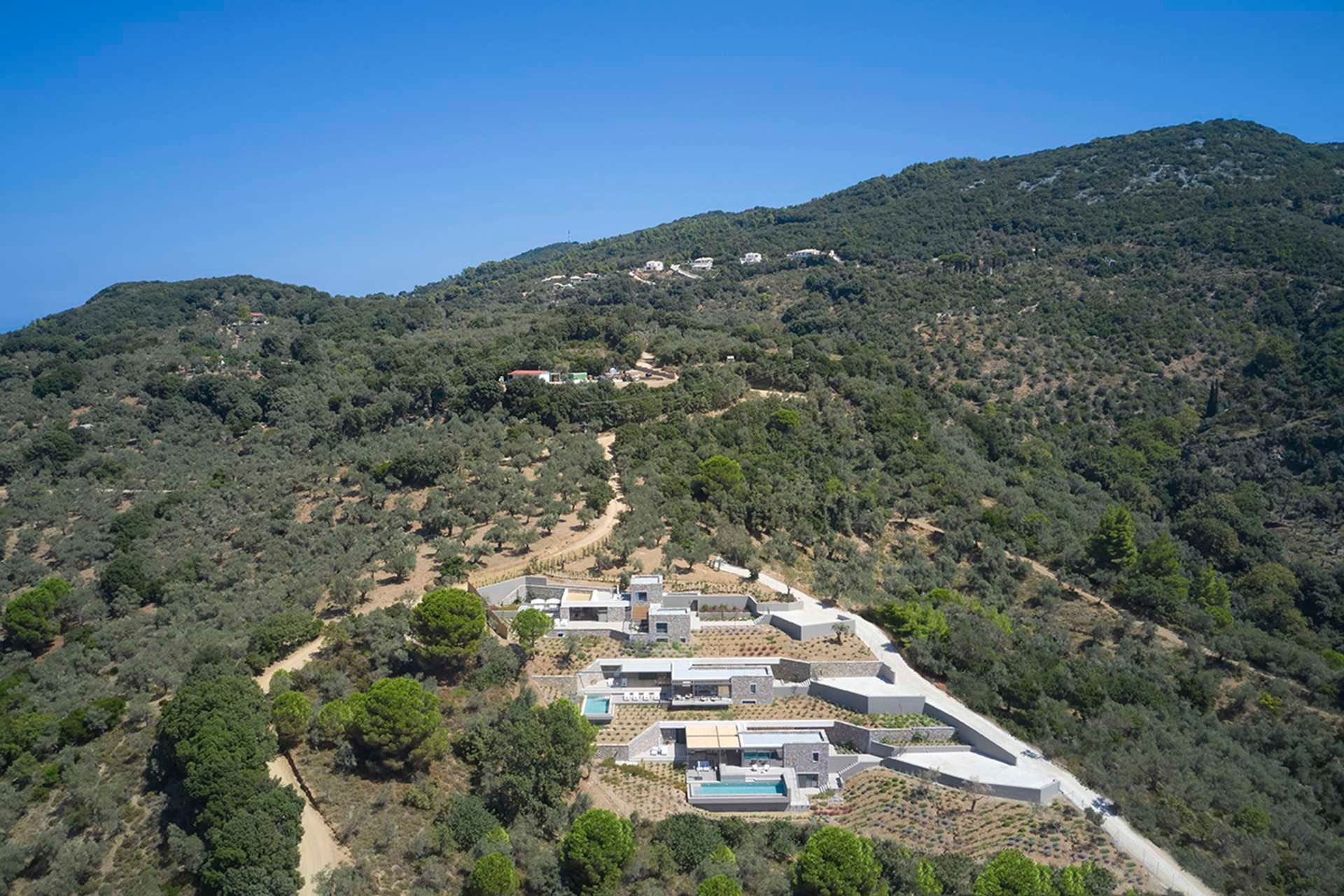 Leafbird invites you to slow down almost immediately, not through grand gestures but through the way it holds its setting. In Kechria, on Skiathos’ quieter side, this luxury villa sits among olives with the Aegean ahead, offering that rare feeling of being away without being cut off. It accommodates up to eight guests in four bedrooms, all ensuite, and the layout across three levels creates a sense of privacy that suits close friends, couples travelling together, or families who like space as much as comfort.