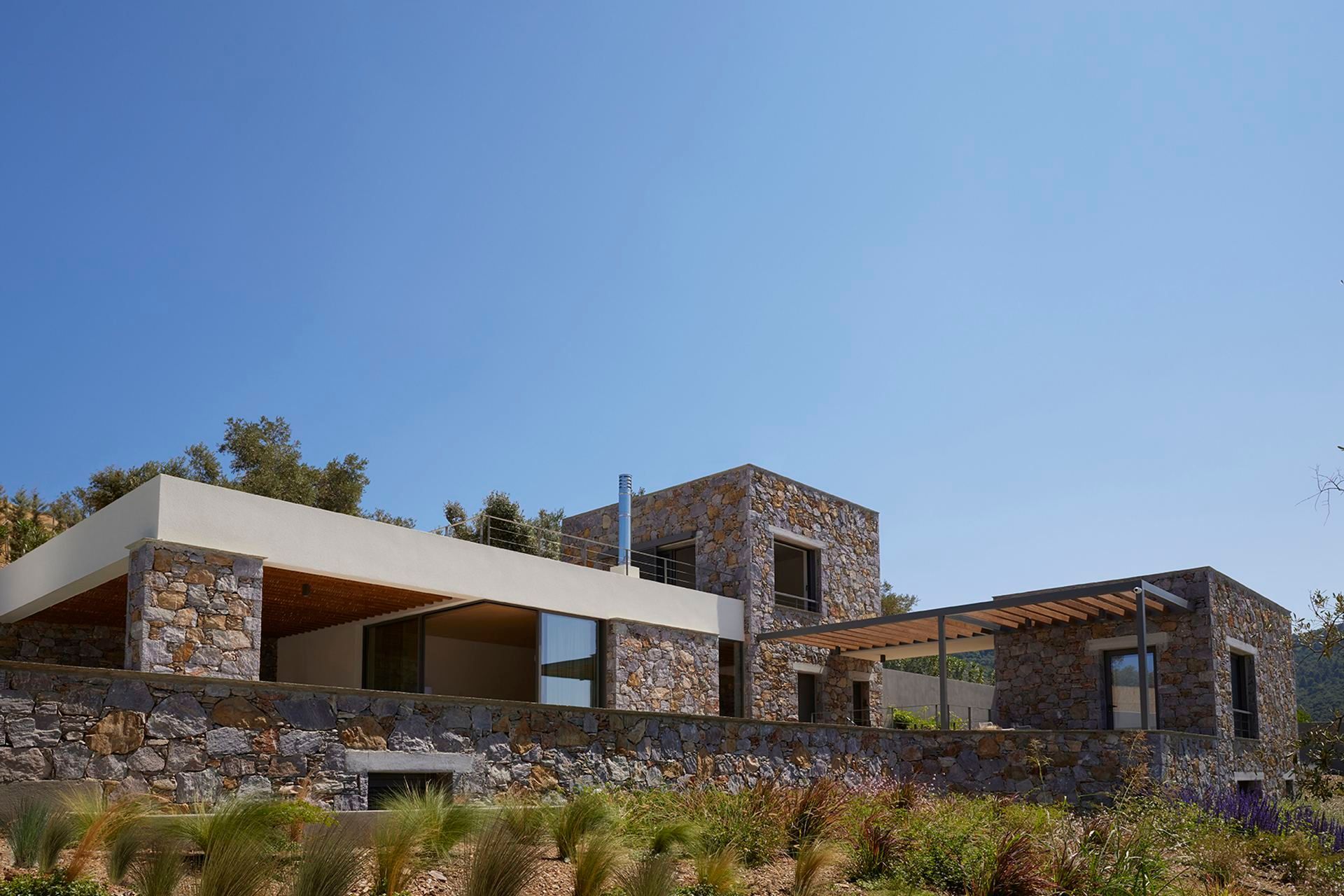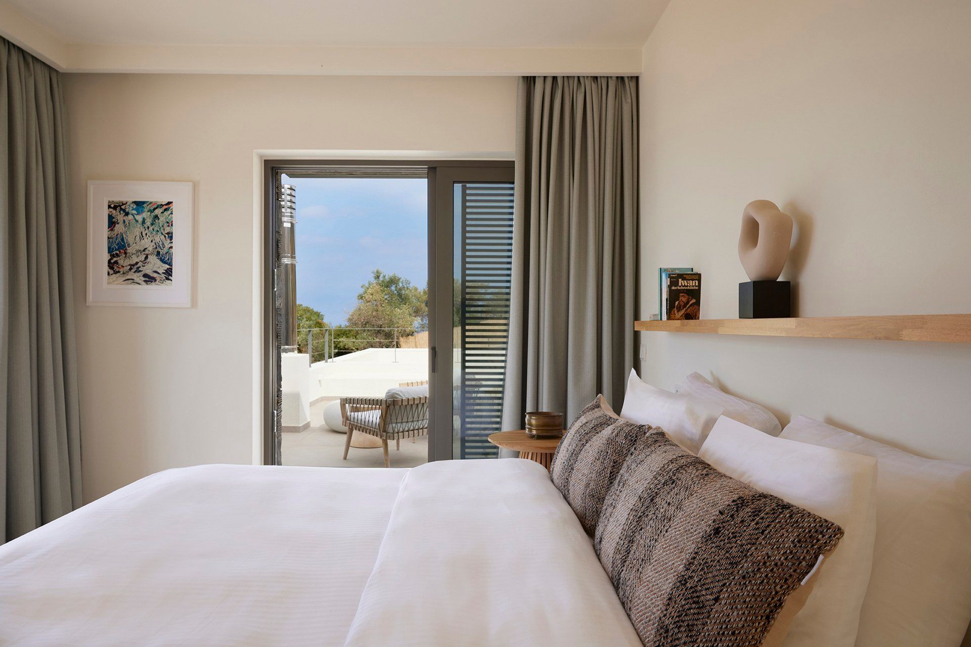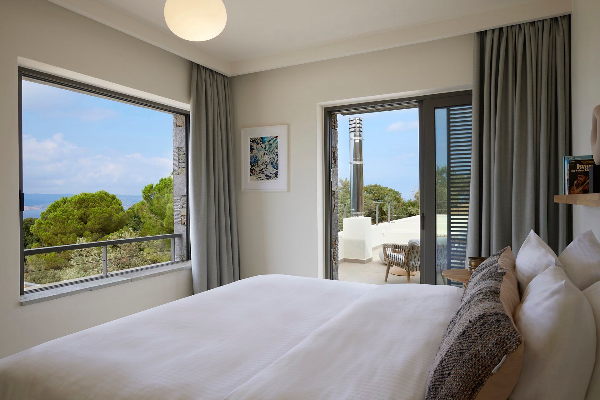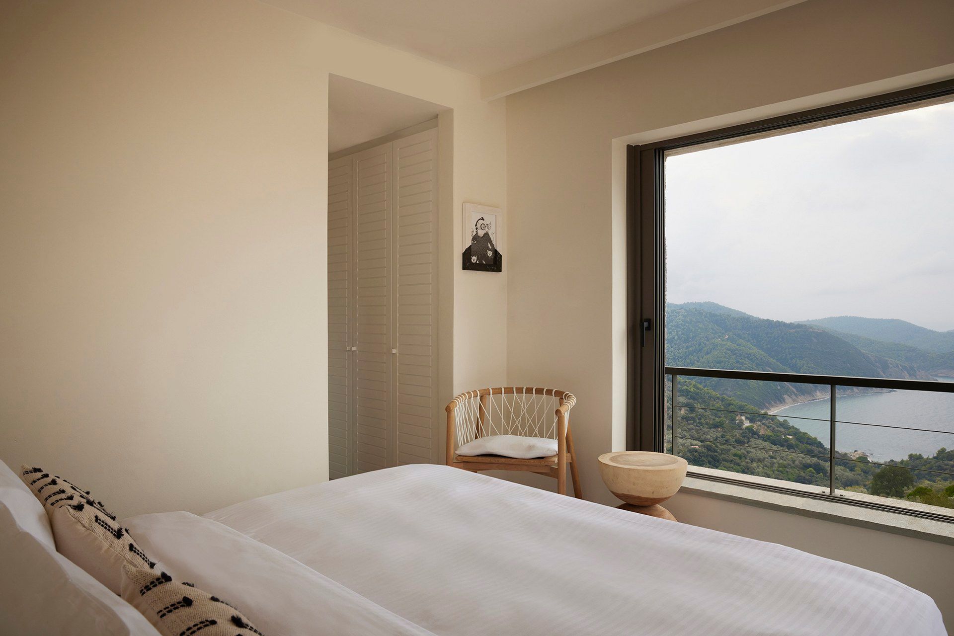 Leafbird invites you to slow down almost immediately, not through grand gestures but through the way it holds its setting. In Kechria, on Skiathos’ quieter side, this luxury villa sits among olives with the Aegean ahead, offering that rare feeling of being away without being cut off. It accommodates up to eight guests in four bedrooms, all ensuite, and the layout across three levels creates a sense of privacy that suits close friends, couples travelling together, or families who like space as much as comfort.