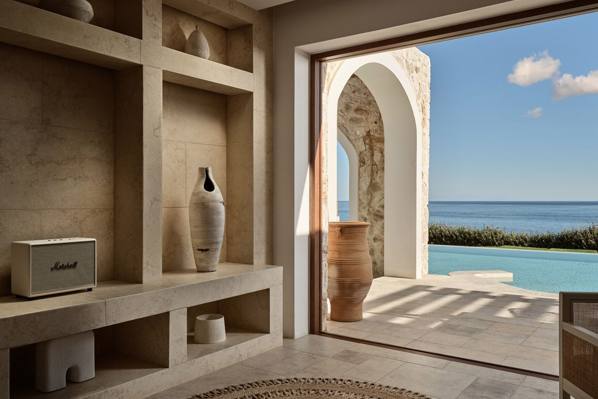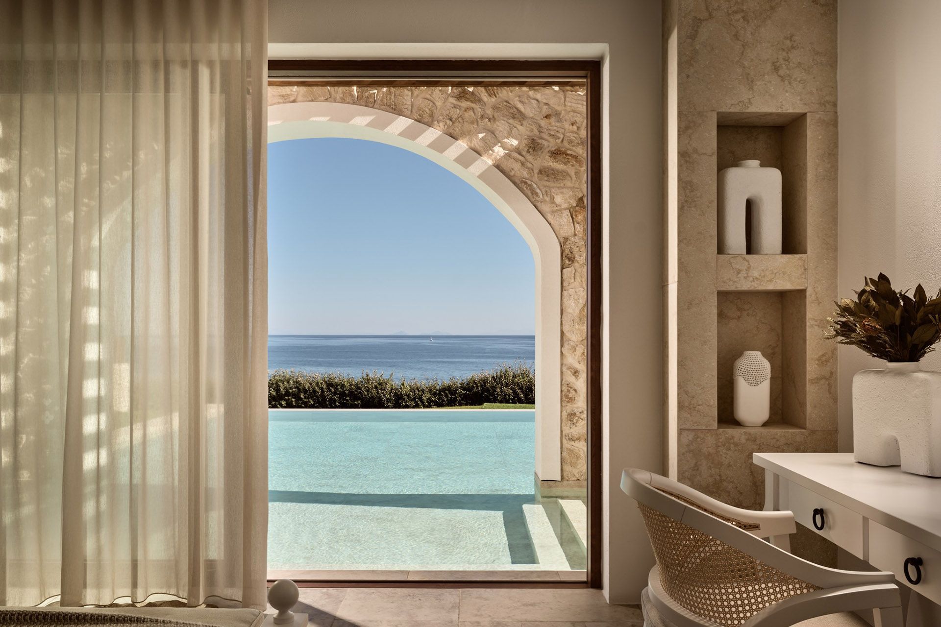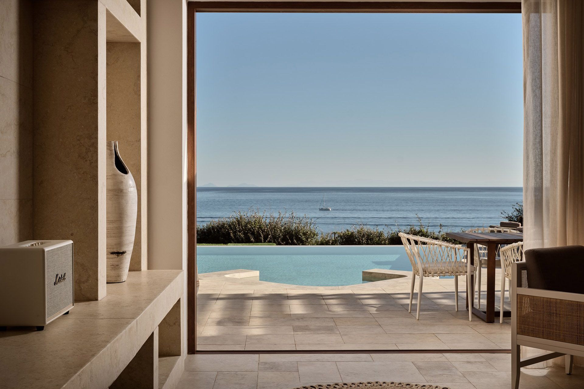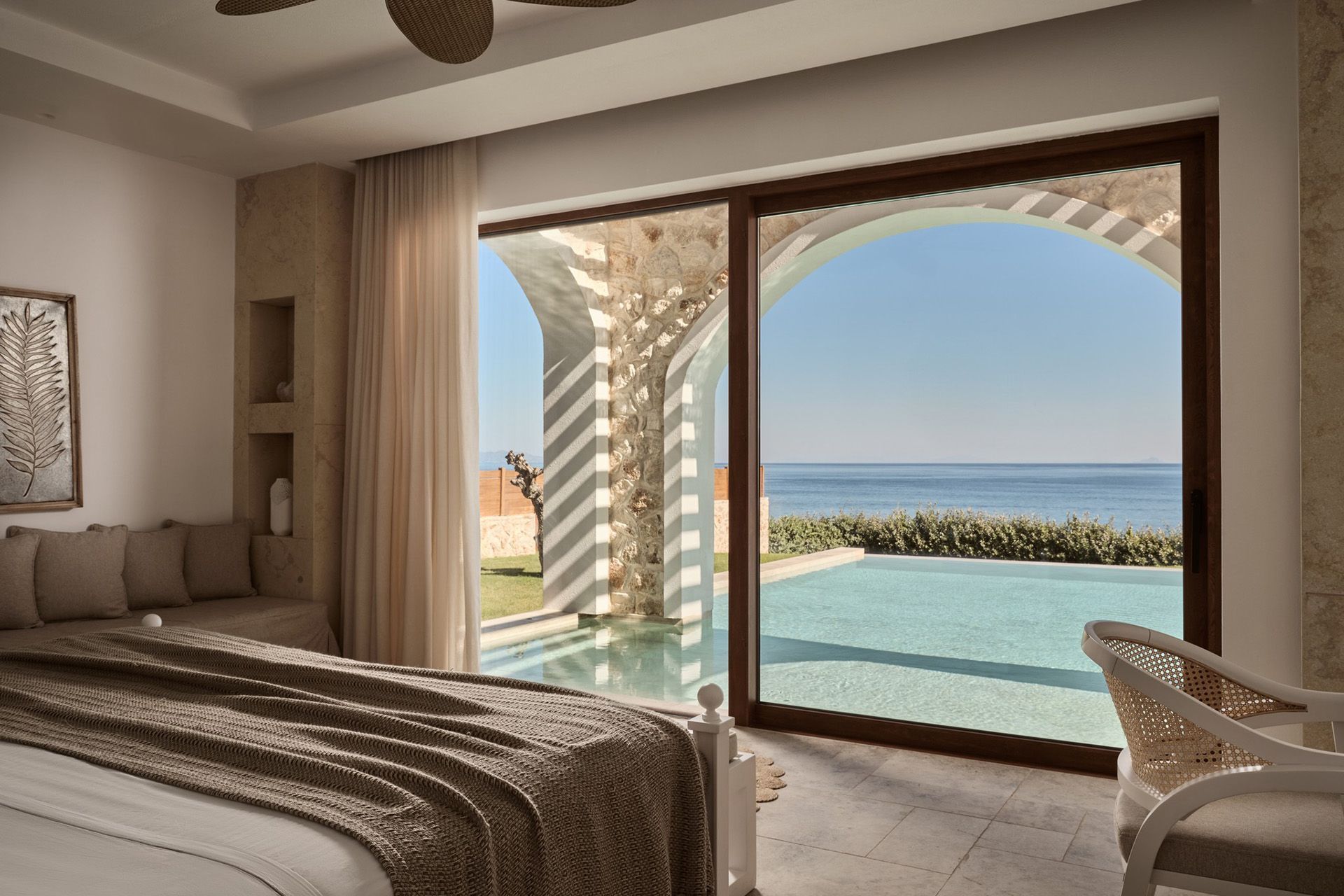 Thyme is the kind of place that quietly nudges you into taking better care of yourself. Tucked into Akrotiri with the Ionian stretched out ahead, this three-bedroom villa for six pairs a heated infinity pool with two king suites featuring jetted bathtubs, plus access to wellness facilities and a gym. Yet it never feels prescriptive. It simply sets the conditions for slower mornings, more movement and better sleep—then leaves the rest to you.